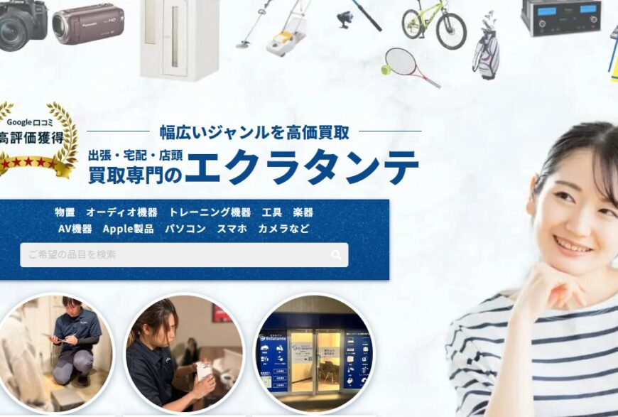 「エクラタンテ」は、出張・宅配・店頭で幅広い品物を買取するリサイクル専門店です。 無店舗運営でコストを抑え、高価買取を実現。